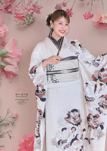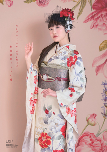 - 白 地 にモノト ーン 、 モ ダン な 椿 姿 。