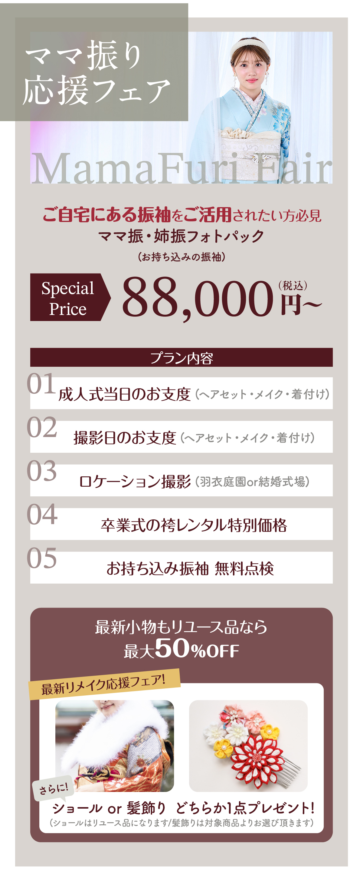 変更の手数料などは掛かりませんので、好みが変わってしまっても、安心してお振袖選びをお楽しみ下さい。