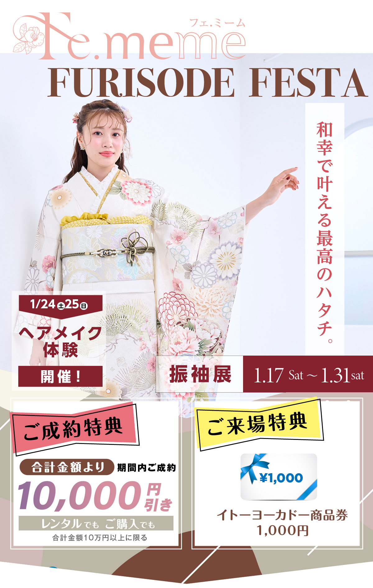 変更の手数料などは掛かりませんので、好みが変わってしまっても、安心してお振袖選びをお楽しみ下さい。